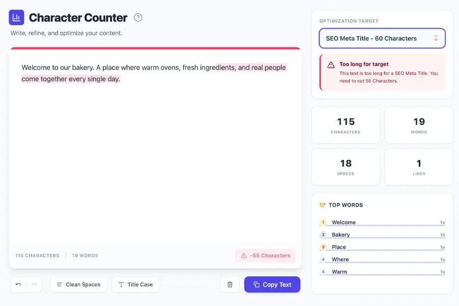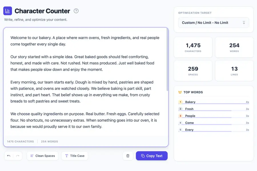 Count characters and words accurately for ads, posts, SMS messages, and listings. Includes platform-friendly limits so your text never gets cut off.