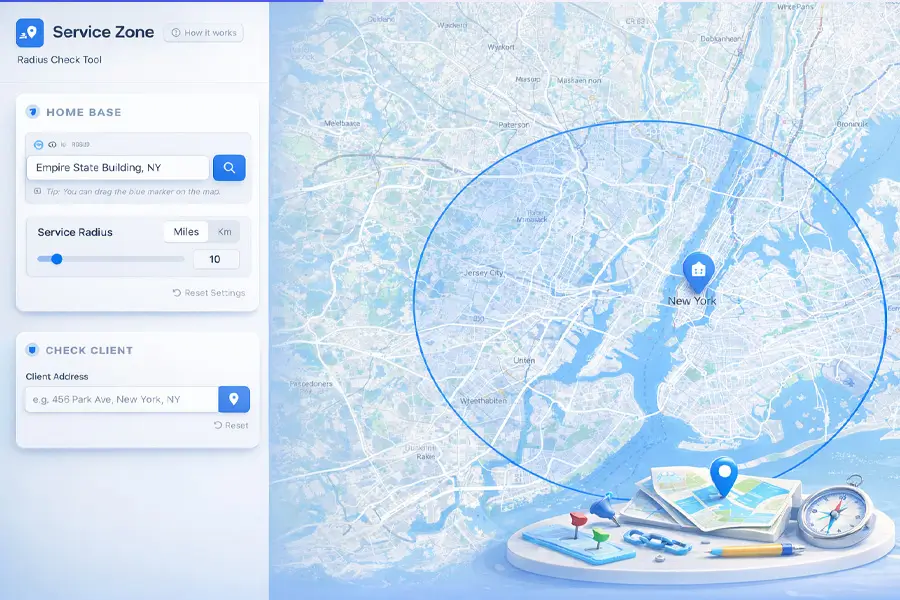 Define your service radius and instantly understand which nearby areas you should target. Ideal for contractors and service businesses planning coverage zones.